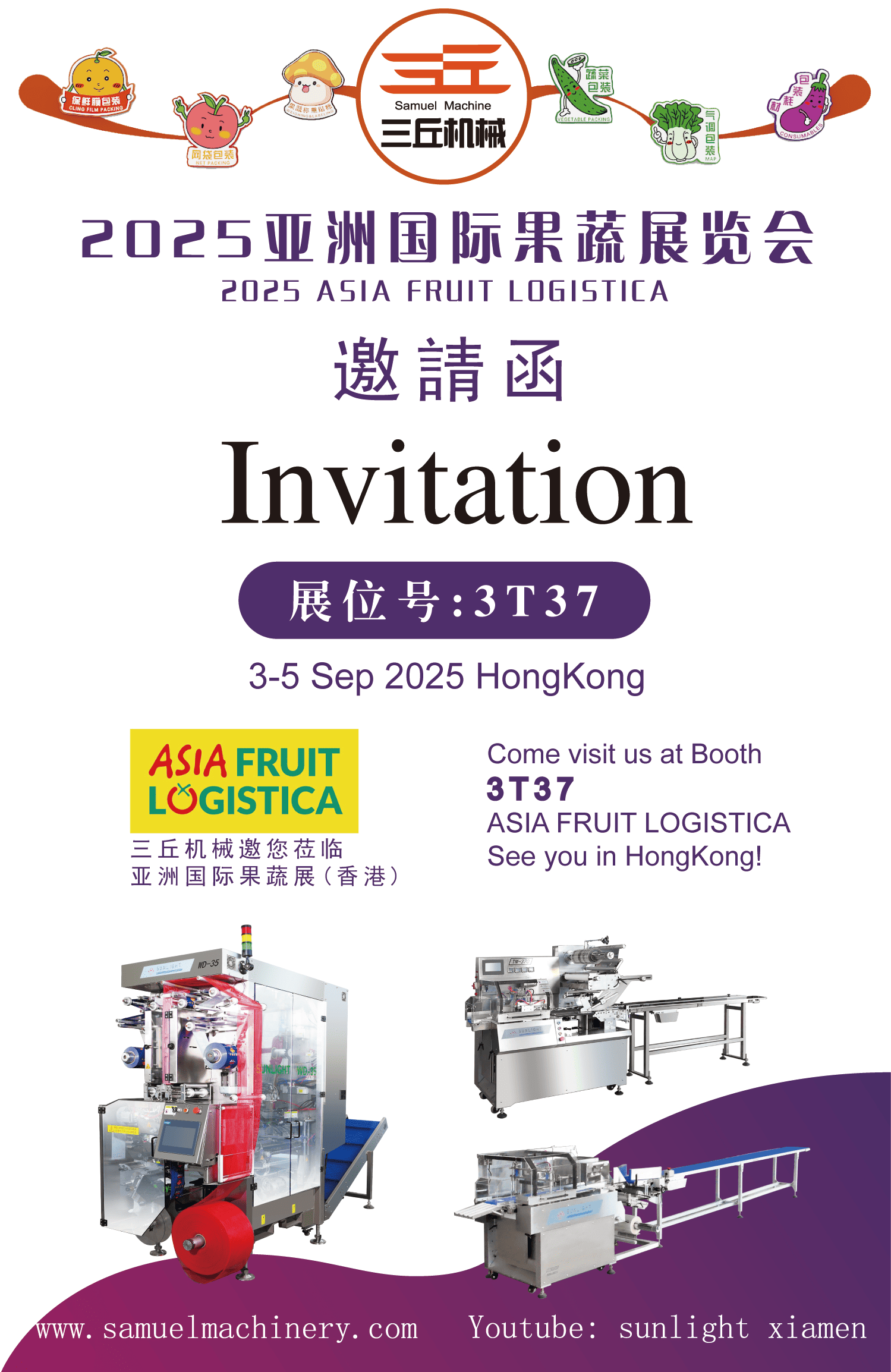 We are excited to announce that Samuel Machinery will once again participate in Asia Fruit Logistica 2025, Asia’s premier fresh produce trade show! Visit us at Booth 3T37 from September 3-5 in Hong Kong to explore our advanced packaging solutions.
